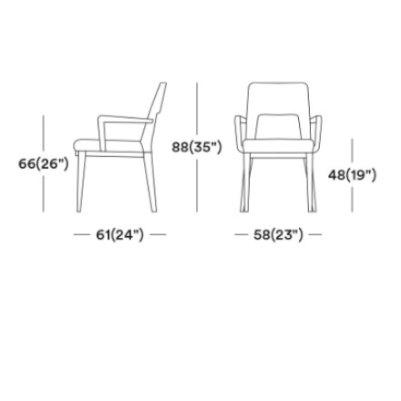 Lampia apertura sullo schienale caratterizza l’estetica di auesta seduta e la