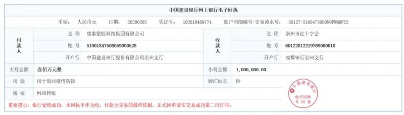 2008年5月12日,汶川特大地震災(zāi)害發(fā)生后,康泰積極捐款捐物,先后向汶川第一中學(xué)、都江堰一中、雁門小學(xué)、雁門安置房、映秀大壩水站、綿竹市板房區(qū)以及什邡市新農(nóng)村建設(shè)等地震災(zāi)區(qū)捐款、捐物達(dá)300余萬元。2020年1月,一場突如其來的新型冠狀病毒肺炎疫情肆虐中華大地??堤┞氏软憫?yīng)社會號召,第一時間向崇州市紅十字會捐款100萬元,專門用于疫情防控工作,彰顯了大愛無疆的新時代企業(yè)精神。