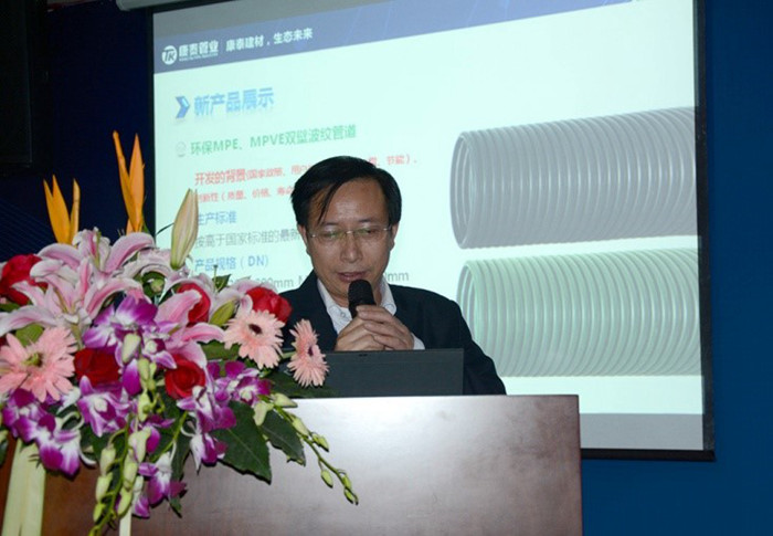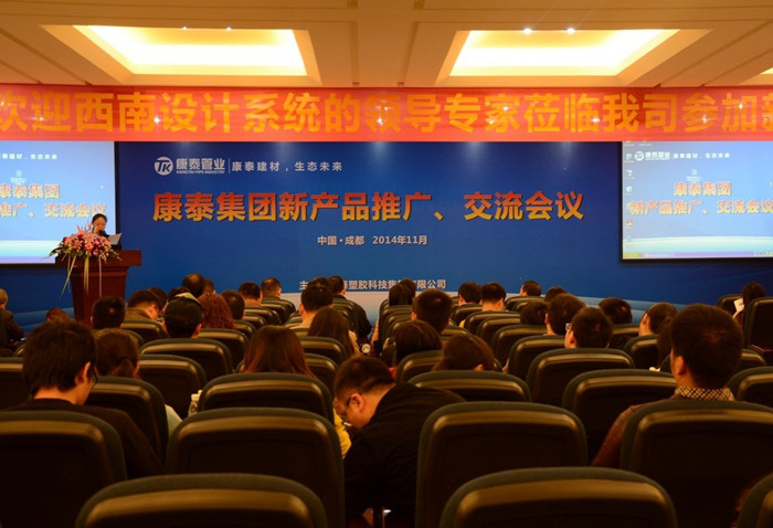 ?????? 11月27日,“康泰集團2014年度新產(chǎn)品成都推廣、交流會”在集團總部圓滿落下帷幕。本次新品推廣、交流會以生態(tài)環(huán)保為主題,以市場需求、國家政策和先進技術(shù)為導向,共推出了環(huán)保MPE、MPVE?雙壁波紋管道、PP超靜音排水管道、HDPE同層排水管道、加強型漩流降噪特殊單立管道五種新品,獲得了參會人員的一直好評。會上,大家共同學習了解了康泰集團的最新產(chǎn)品,會議達到了預(yù)期效果,取得了圓滿成功。?????? 此次會議是康泰集團繼重慶之后在成都舉辦的西南設(shè)計系統(tǒng)的新產(chǎn)品推廣、交流專場盛會。中國市政工程西南設(shè)計研究總院總工程師羅萬申等近百位西南設(shè)計系統(tǒng)的領(lǐng)導、專家撥冗蒞臨,集團公司董事長兼總裁林云青、營銷中心總監(jiān)何朝暉、技術(shù)研發(fā)中心總監(jiān)張雙全、營銷中心副總監(jiān)王金濤,以及相關(guān)部門領(lǐng)導和人員參加了本次會議。