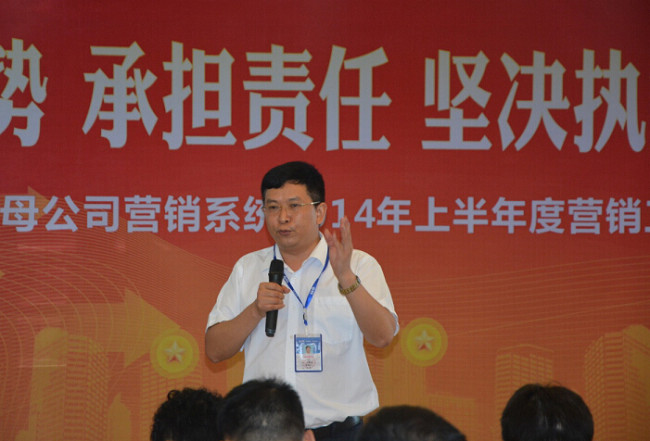 ? ? ? 7月11日8:20,母公司營銷系統(tǒng)全員個個精神飽滿、神采奕奕,在高亢激昂的《康泰之歌》中開啟全天總結(jié)匯報(bào)會議,成都、四川、重慶、云南、西安商務(wù)部、網(wǎng)絡(luò)部、市政部、家裝事業(yè)部、型材事業(yè)部、大客戶部十個團(tuán)隊(duì),分別就2014年上半年度工作總結(jié)、下半年度工作規(guī)劃作出匯報(bào)。最后由營銷中心何朝暉總監(jiān)作營銷中心上半年度總結(jié)、下半年度形勢分析和工作規(guī)劃部署,何總首先對各團(tuán)隊(duì)負(fù)責(zé)人的工作匯報(bào)和規(guī)劃作一對一的詳細(xì)點(diǎn)評和指導(dǎo),并在總結(jié)中說道:“上半年?duì)I銷中心全員團(tuán)結(jié)一致、全力以赴,完成了上半年度的目標(biāo),可喜可賀。但要清醒看到房地產(chǎn)市場重大拐點(diǎn)的嚴(yán)峻形勢,完成下半年銷量指標(biāo)充滿挑戰(zhàn),要求營銷系統(tǒng)全員統(tǒng)一思想,堅(jiān)定以認(rèn)清形勢、承擔(dān)責(zé)任、堅(jiān)決執(zhí)行、挑戰(zhàn)發(fā)展的思路,將每項(xiàng)工作落到實(shí)處,奮力拼搏爭取圓滿完成下半年經(jīng)營指標(biāo)” 。