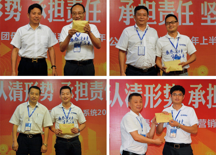 ? ? ? 會議最后,集團(tuán)公司林總裁就本次“認(rèn)清形勢、承擔(dān)責(zé)任、堅(jiān)決執(zhí)行、挑戰(zhàn)發(fā)展”半年度營銷總結(jié)表彰大會作全面總結(jié)、鼓勵與動員。林總裁首先肯定和贊揚(yáng)了此次營銷人員會議期間的良好表現(xiàn),對全體會議籌備人員的工作表示感謝,對獲得表彰的團(tuán)隊(duì)、個人致以熱烈的祝賀!