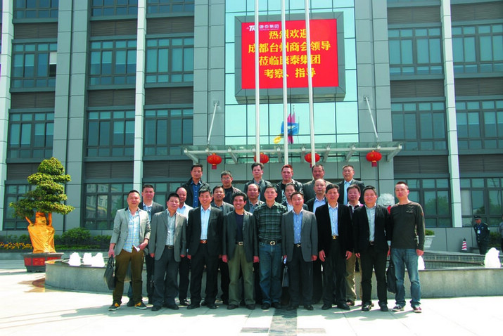 ??? 芬芳四月,風(fēng)和日麗。2013年4月13日,成都臺(tái)州商會(huì)企業(yè)家考察團(tuán)一行四十余人,在陳順法會(huì)長的帶領(lǐng)下,來到崇州市,參觀考察了商會(huì)名譽(yù)會(huì)長單位康泰塑膠科技集團(tuán),名譽(yù)會(huì)長林云青和常務(wù)副會(huì)長陳霞富熱情接待。
