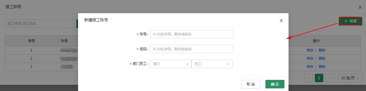 主賬號(hào)登錄,進(jìn)入應(yīng)用中心-移動(dòng)報(bào)工,點(diǎn)擊“報(bào)工賬號(hào)”,即可進(jìn)入報(bào)工賬號(hào)新建頁(yè)。