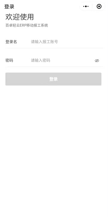 從生產(chǎn)工單或工序任務(wù)列表頁(yè)點(diǎn)擊“移動(dòng)報(bào)工”,掃描二維碼,進(jìn)入移動(dòng)報(bào)工小程序,輸入報(bào)工賬號(hào)及密碼登錄。